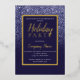 A modern, pretty chic and elegant faux navy blue glitter shower ombre with black colour block business corporate Christmas party invitation with gold ombre pattern with real gold foil