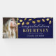 Upgrade your graduation celebration with this sleek and modern party banner. The design features a sophisticated navy blue backdrop that can easily be customised to any colour scheme to honour the graduate in style. A spot for a photo of the graduate, faux gold foil caps raining down, and a text template make it simple to personalise. This modern graduation banner sets the tone for an unforgettable celebration!