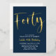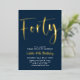 Forty Navy and White Birthday Invitation with modern script font in real gold foil. A simple and fun adult birthday invitation for your 40th birthday party.