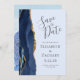 Navy Gold Agate Pale Blue Photo Save the Date Invitation
