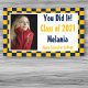 Use this Navy Gold Chequerboard Photo Graduation Banner to celebrate your graduate. Personalise with your grad's name, photo, class year and school. This school spirit banner features navy and gold school colours in a classic chequerboard pattern.