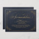 Elegant handwriting calligraphy script with flourish frame in navy blue and faux gold colour, clean and formal, great accommodations cards for vintage wedding, traditional wedding, and classic wedding all year round.