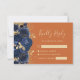Navy Gold Floral Burnt Orange Wedding RSVP Card