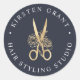 Navy & Gold Floral Scissors Logo Classic Round Sticker