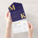 Stylish all in one wedding invitation with big gold foil initials, a modern gold foil typography design, and attached RSVP card with meal choices.