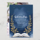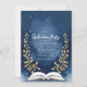 Navy Gold Laurel Book Graduation Party Photo Invitation