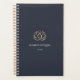 Chic personalised planner for your spa, holistic health & wellness, yoga studio, or massage therapy business features two lines of custom text in classic white lettering, on a rich navy blue background adorned with a faux gold foil lotus flower logo. A silhouette of a meditating person is subtly worked into this modern and elegant design. Personalise with your name or business name, or your choice of custom text.