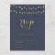 Navy gold modern lights wedding rsvp postcards
