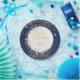 Moon & Stars themed paper plate featuring elegant watercolour greenery and dreamy moon and star elements in moody navy blue and gold