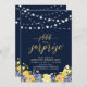 Navy & Gold String Lights Surprise Birthday Party Invitation