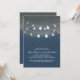 Faux gold foil string lights navy engagement party invitations for rustic country, vintage yet modern engagement celebration.