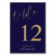 Finish off your private or business event decor with this elegant navy and gold table number sign. Use this elegant gold foil effect table numbers card for your company function, fundraiser or wedding reception, this simple design will suit any occasion! You can edit the number and event name text, to create custom seating chart signs for your event.