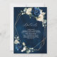 Dark navy blue floral wedding Invitation featuring elegant bouquet of navy blue, royal blue , white , gold, champagne ivory, blush colour rose , hydrangea, ranunculus, peony, flower buds and sage green eucalyptus leaves and elegant watercolor with round glitter geometric neutral frame. Please contact me for any help in customisation or if you need any other product with this design.