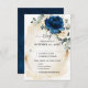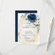 Dark navy blue floral wedding RSVP card with meal choice featuring elegant bouquet of navy blue, royal blue , white , gold, champagne ivory, blush colour rose , hydrangea, ranunculus flower buds and sage green eucalyptus leaves and elegant watercolor with round glitter geometric frame. Please contact me for any help in customisation or if you need any other product with this design.