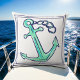 Navy Green Anchor Nautical Boat Coastal Cushion
