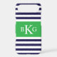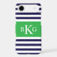 Navy Green Stripes Monogram Case-Mate iPhone Case