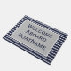 Perfectly chic, and classic navy and white with grey Welcome Aboard _________ doormat for your boat of marina slip customisable with your boats name
