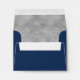 This customisable navy blue, grey, and white A2 size RSVP envelope coordinates with the classic Bar Mitzvah invitation suite below. This custom A2 envelope has a navy blue background with your family name and address in white at the centre front of the envelope. It's sure to stand out in the mail and will leave a lasting impression on your guests. The inside uses the same silvery grey pattern that is used in the striped pattern on the other stationery items.