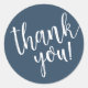 Navy Hand Lettered Script Thank You Classic Round Sticker