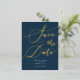 Navy Handwritten Calligraphy Save The Date Foil Invitation Postcard