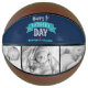 “Happy First Father’s Day.” Celebrate all of Dad’s joy of becoming a new parent. Cool, modern white and aqua blue typography and banner, plus a sweet red heart, overlay a navy blue background. Add 3 photos of your choice and customise the copy for the perfect, personalised keepsake basketball that he’ll treasure always. Choice of 2 sizes: mini (6” diameter) and full (9.5” diameter). Makes a terrific Dad gift for Father’s Day!