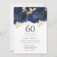 Navy Indigo Blue & Gold Floral 60th Birthday Party Invitation