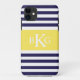 Navy Lemon Yellow Stripes Monogram Case-Mate iPhone Case