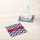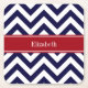 Navy Lg Chevron Cranberry Quatrefoil Name Monogram Square Paper Coaster