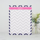 Navy Blue and White Large Chevron Zig Zag Pattern, Hot Pink #2 Ribbon Name Monogram Label