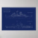 Handsome blueprint of the historic Navy light cruiser U.S.S. Little Rock, now on display and accessible to the public in Buffalo Harbor in Western New York. The Little Rock was completed in 1945 and served as the flagship of the 6th Fleet in the Mediterranean throughout the Cold War. She is the last of her kind in existence.