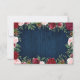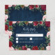Navy Marsala Country Rustic Wedding RSVP Cards - features a rustic navy blue wood background with greenery, roses and other floral elements in shades of blush pink, marsala, burgundy and more.