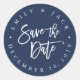 Navy | Modern Brush Lettered Save the Date Classic Round Sticker