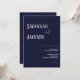 This Navy Modern Elegant Wedding Invitation features lettering in white. The simple, yet bold design will compliment your modern wedding style. This is the perfect invitation for a sleek and sophisticated wedding in navy.
