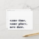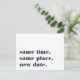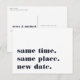 Need to postpone or reschedule your wedding? Let guests know with these modern and lighthearted postcards in white with rich navy blue lettering. Funny and clever typography-based design features "same time, same place, new date" on front, with your new wedding date and details on the back.