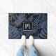 Bring a bit of elegant tropical hospitality into your home with this chic, modern doormat with a handwritten monogram initial over a graphic palm leaf pattern of steel navy blue gradations overlaying a black background. Makes a great gift for a special friend, or even yourself!