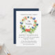 Navy n Orange Chrysanthemum Thistle Wreath Wedding Invitation