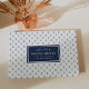 Our coastal chic guest book is perfect for inviting your beach house or vacation rental guests to share their memories and good wishes. Featuring a classic nautical colour palette of navy blue and white, our guest book's front and back are covered in a tiny anchor pattern, with a solid navy spine. Personalise the front with three lines of custom text for your vacation rental or beach house name and book contents.