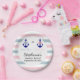 Navy nautical anchor with pastel pink bow and pastel blue bow tie gender reveal paper plates. The design features navy anchors with pink and blue bow and bow tie and the text "Little Man or Little Miss". Also you can add your custom text to the design.