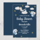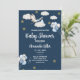 Celebrate the arrival of a precious little one under a starry sky with this dreamy baby shower invitation. Featuring a watercolor stork carrying a bundle among fluffy clouds and golden stars, this design sets the tone for a cosy and magical gathering.