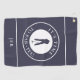 This funny navy blue golf towel features a bold male golfer silhouette inside a crisp white emblem with the curved phrase “It’s Time To Par Tee!” in clean white lettering. A modern personalisation template lets you add a monogram, initials, or a full name, giving the design a sharp custom look. The solid navy background keeps the style classic and masculine, making it a great choice for golfers who enjoy a humourous saying paired with a personalised touch.