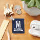 This design features personalised groomsman's monogram, name and title in white modern bold sans serif font style on navy blue background.