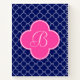 Create your own monogrammed blank spiral notebook with a white and dark navy blue fine quatrefoil trellis pattern with a lovely bright floral pink and white monogram shape.