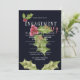 Navy pink holly berry winter engagement party invitation
