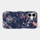 Here's a pretty faux marble phone case with your monogram in pale pink on a dark navy blue background that is marbled with tones of pink. A few star shine images add extra interest and a bit of sparkle. Very distinctive!