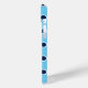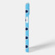Protect your iPhone with an impact resistant case featuring a playful geometric pattern of navy blue polka dots outlined in white on a bright blue background.