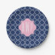 Navy Quatrefoil + Pink Monogram Paper Plate