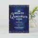 Be proud, rejoice and showcase your daughter’s milestone Quinceañera with this sophisticated, personalised invitation! Send out this stunning, simple, festive, modern, party invite for an event to remember. Sparkly silver faux foil princess crown, calligraphy script and tiny confetti glitter dots, along with white serif typography, overlay a dramatic navy blue watercolor background. Personalise the custom text with your daughter’s name as well as other party venue details. Great for the budding fashionista who loves modern glitter and glam and guaranteed to add stylish fun to her special milestone!