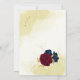 Beautiful wedding save the date card featuring dark navy blue and red flowers and gold leaves .