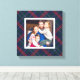 This festive plaid Christmas holiday wall art canvas features a custom square family photo space framed by a classic navy blue, hunter green and red Scottish tartan plaid pattern. Photo tip: crop your photo to a square shape prior to upload.
