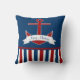 Navy Red White Nautical Stripes Red Anchor Banner Cushion
